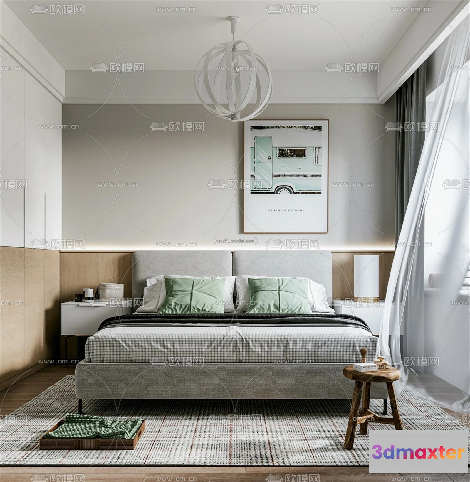 Nordic Style Interior 3D Blocks – Bedroom 3D Model – 290 – Bedroom 3D Model – VRAY