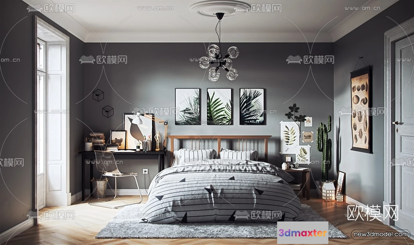 Nordic Style Interior 3D Blocks – Bedroom 3D Model – 292 – Bedroom 3D Model – VRAY