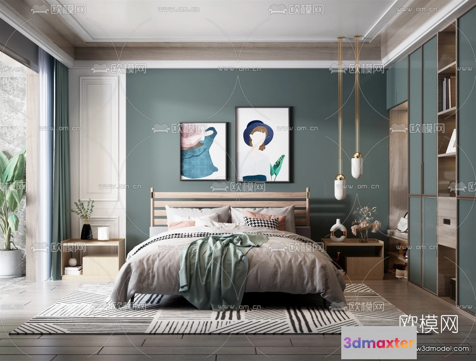 Nordic Style Interior 3D Blocks – Bedroom 3D Model – 299 – Bedroom 3D Model – VRAY
