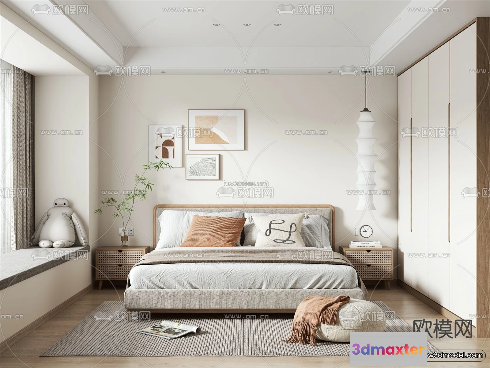 3D Models / 3D Scenes / Interior / Bedroom / Nordic Style Interior 3D Blocks – Bedroom 3D Model – 313 3D Max