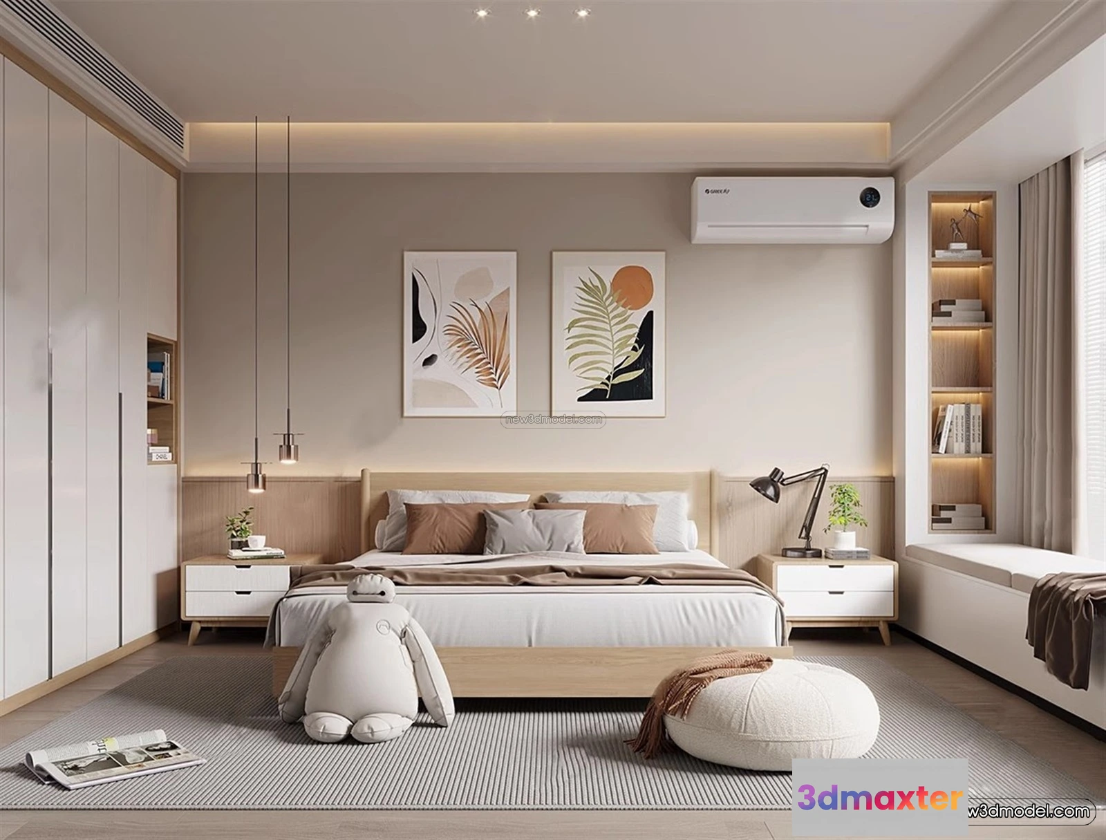 3D Models / 3D Scenes / Interior / Bedroom / Nordic Style Interior 3D Blocks – Bedroom 3D Model – 318 3D Max