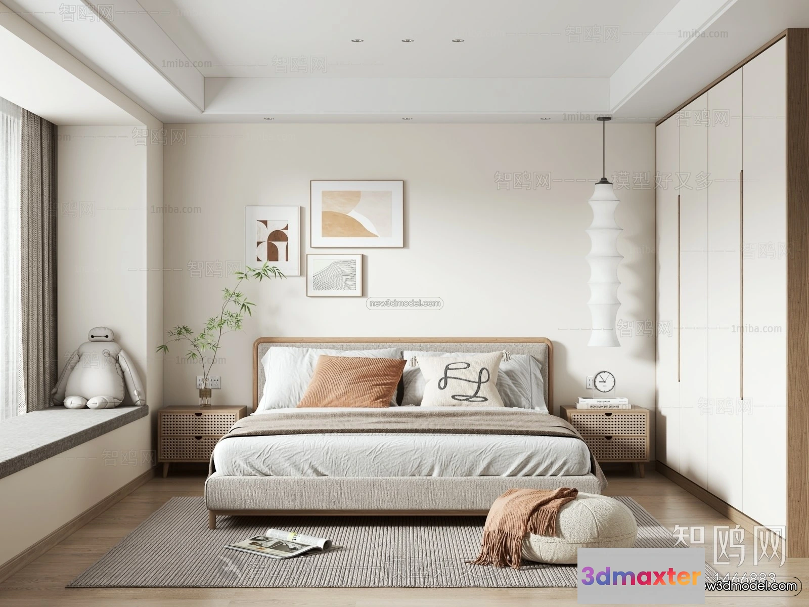 3D Models / 3D Scenes / Interior / Bedroom / Nordic Style Interior 3D Blocks – Bedroom 3D Model – 321 3D Max