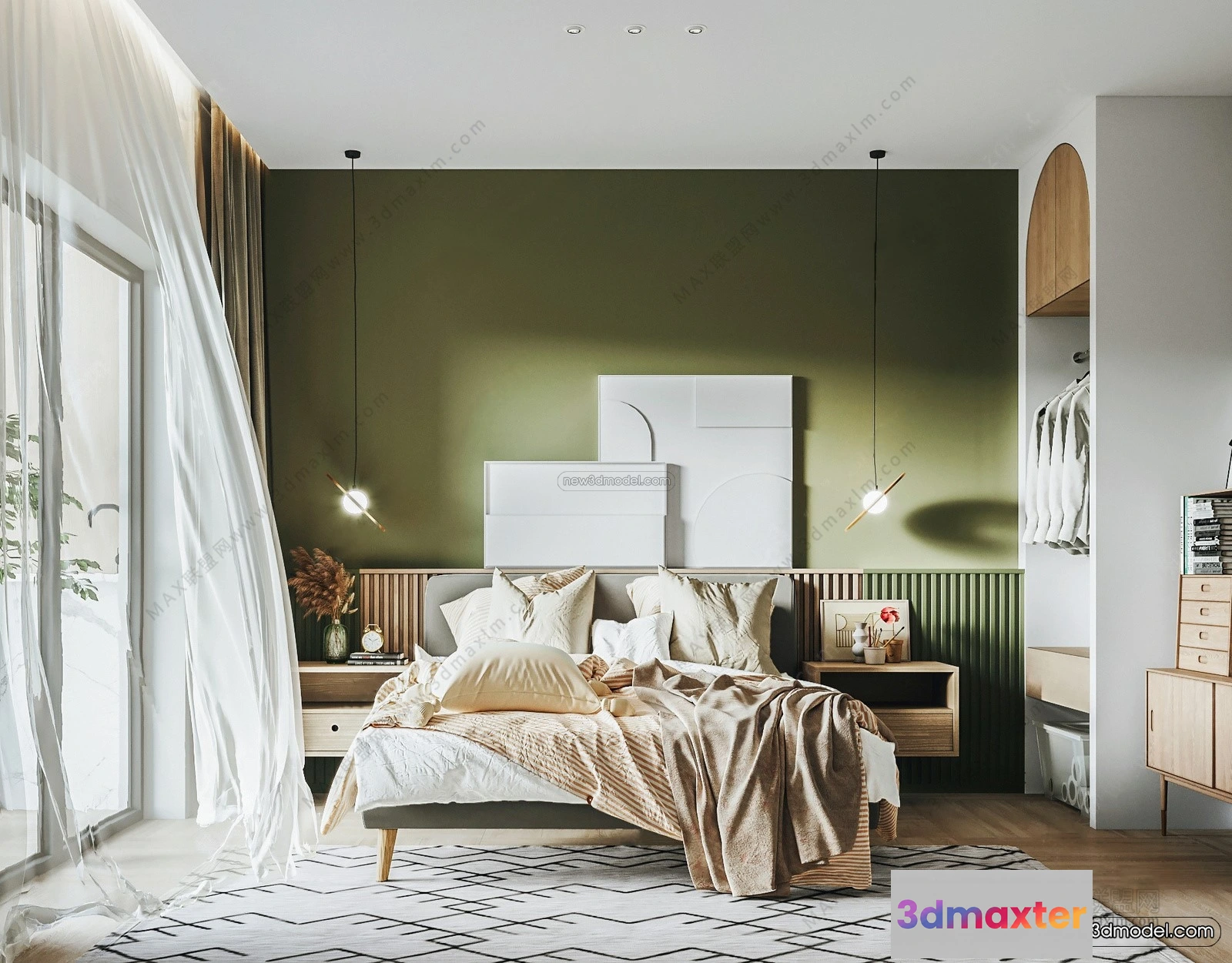 Nordic Style Interior 3D Blocks – Bedroom 3D Model – 328 – Bedroom 3D Model – VRAY