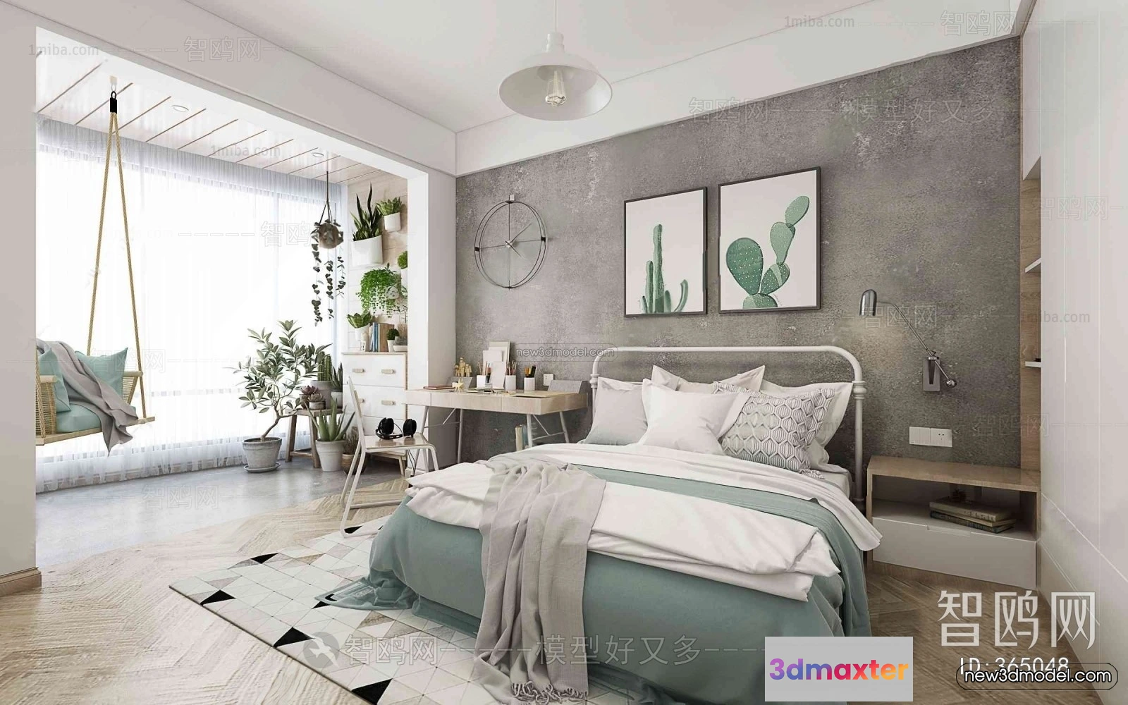 3D Models / 3D Scenes / Interior / Bedroom / Nordic Style Interior 3D Blocks – Bedroom 3D Model – 338 3D Max