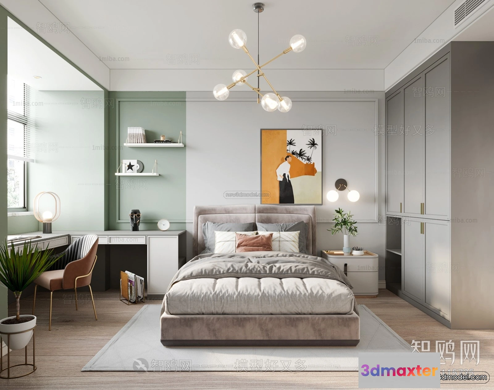 3D Models / 3D Scenes / Interior / Bedroom / Nordic Style Interior 3D Blocks – Bedroom 3D Model – 346 3D Max