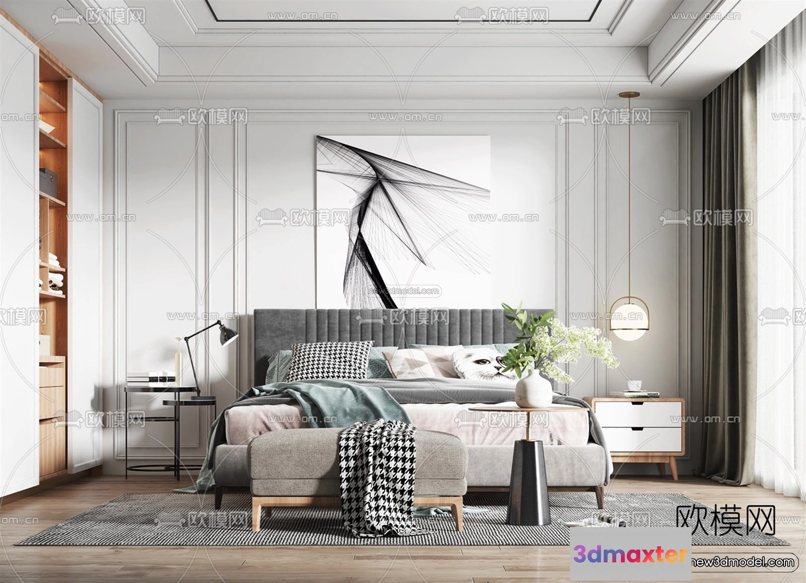 Nordic Style Interior 3D Blocks – Bedroom 3D Model – 351 – Bedroom 3D Model – VRAY