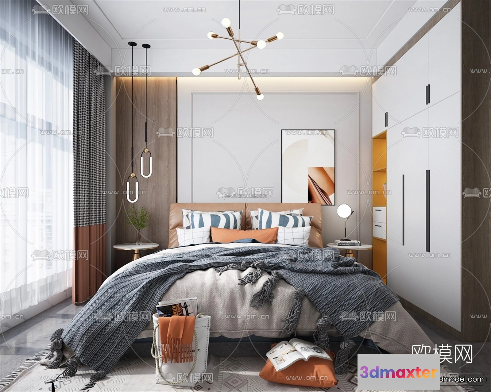 Nordic Style Interior 3D Blocks – Bedroom 3D Model – 352 – Bedroom 3D Model – VRAY