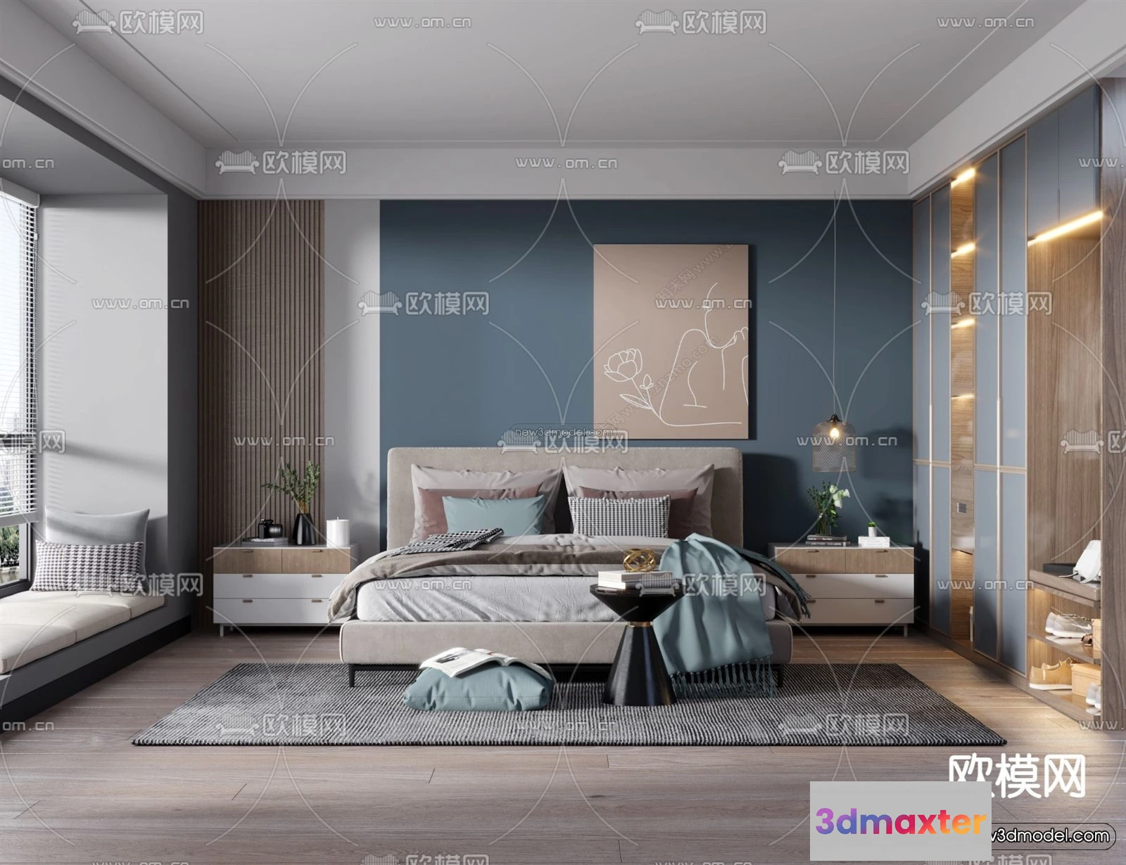 3D Models / 3D Scenes / Interior / Bedroom / Nordic Style Interior 3D Blocks – Bedroom 3D Model – 372 3D Max
