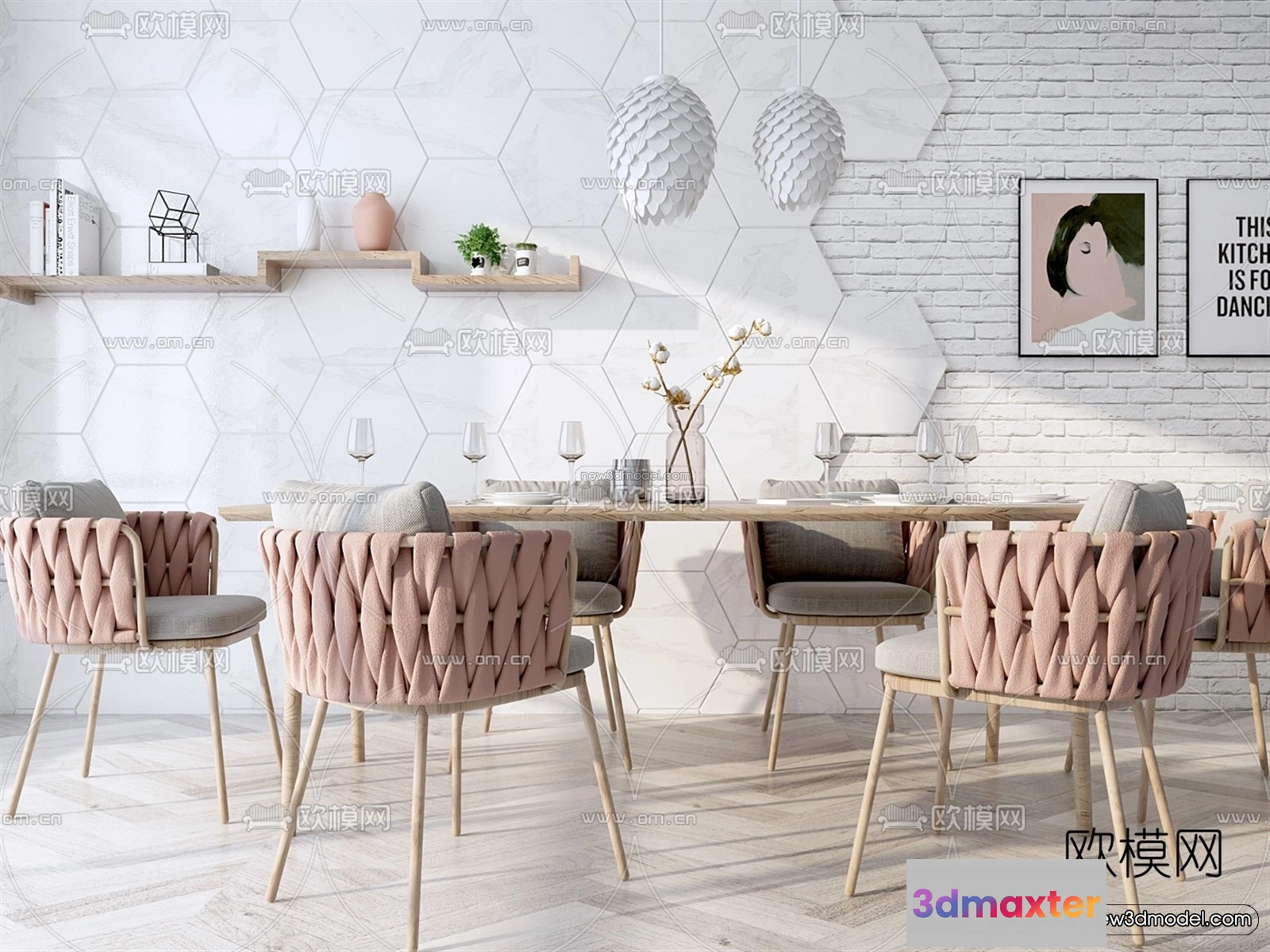 3D Models / 3D Scenes / Interior / Dining Room / Nordic Style Interior 3D Blocks – Dining Room 3D Model – 388 3D Max