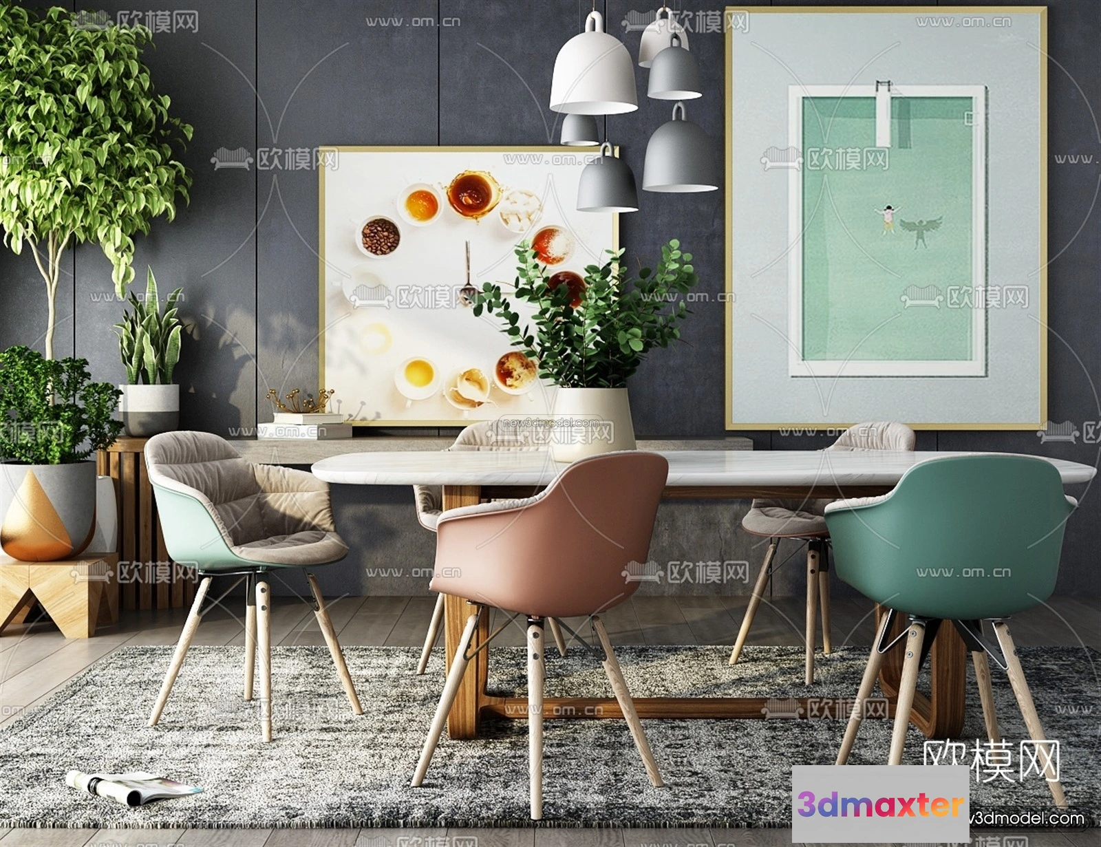 3D Models / 3D Scenes / Interior / Dining Room / Nordic Style Interior 3D Blocks – Dining Room 3D Model – 389 3D Max
