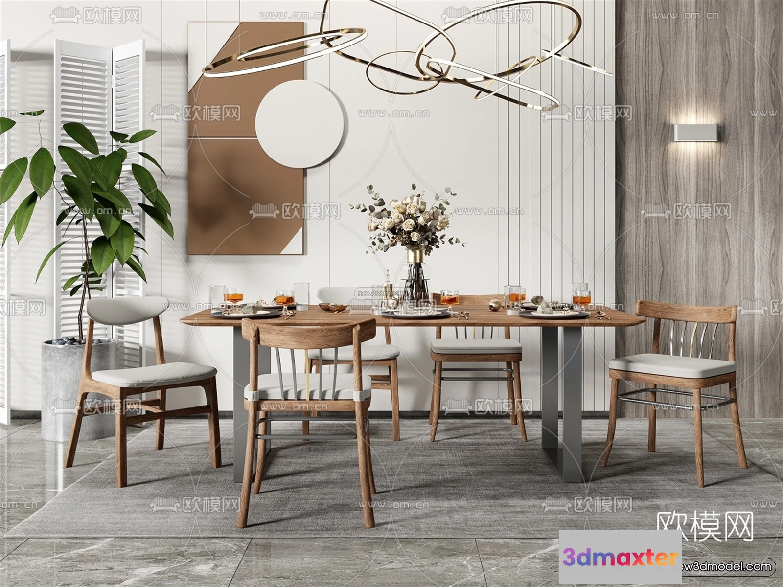 3D Models / 3D Scenes / Interior / Dining Room / Nordic Style Interior 3D Blocks – Dining Room 3D Model – 393 3D Max