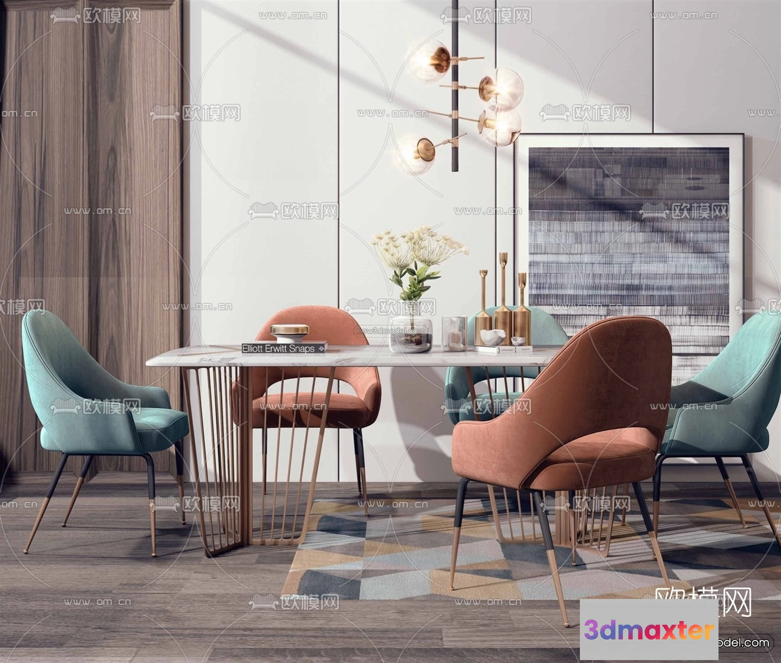 Nordic Style Interior 3D Blocks – Dining Room 3D Model – 398 – Dining Room 3D Model – VRAY