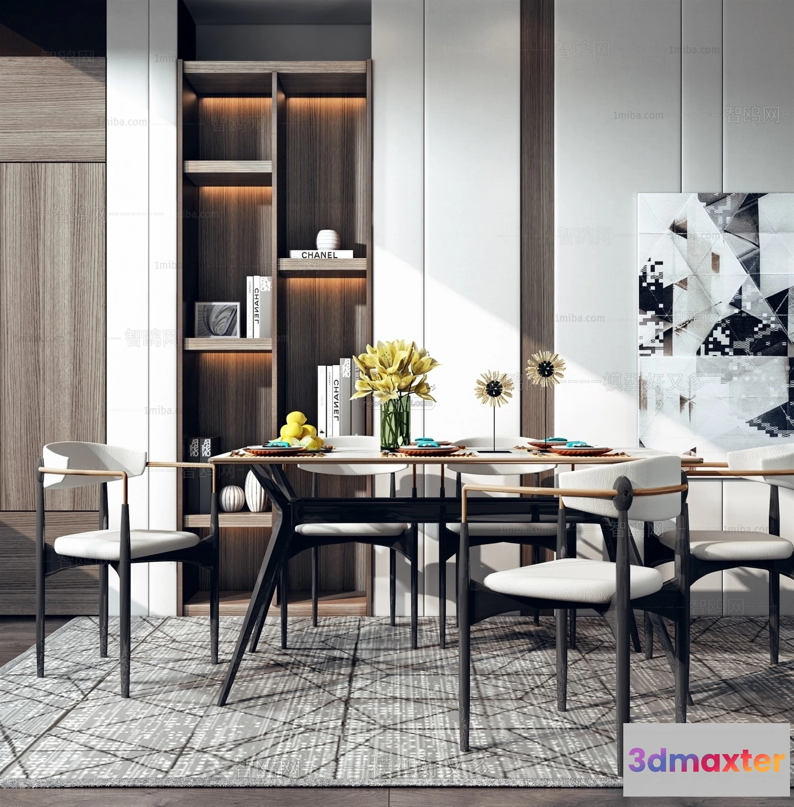 3D Models / 3D Scenes / Interior / Dining Room / Nordic Style Interior 3D Blocks – Dining Room 3D Model – 402 3D Max