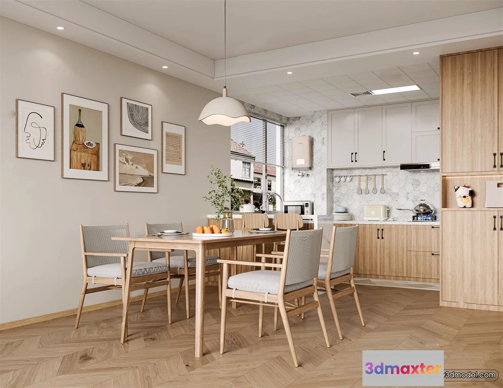 Nordic Style Interior 3D Blocks – Dining Room 3D Model – 405 – Dining Room 3D Model – VRAY