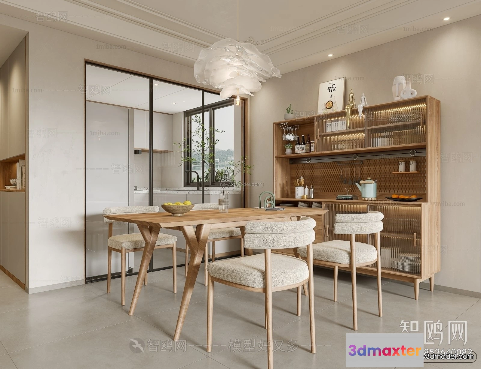 Nordic Style Interior 3D Blocks – Dining Room 3D Model – 407 – Dining Room 3D Model – VRAY