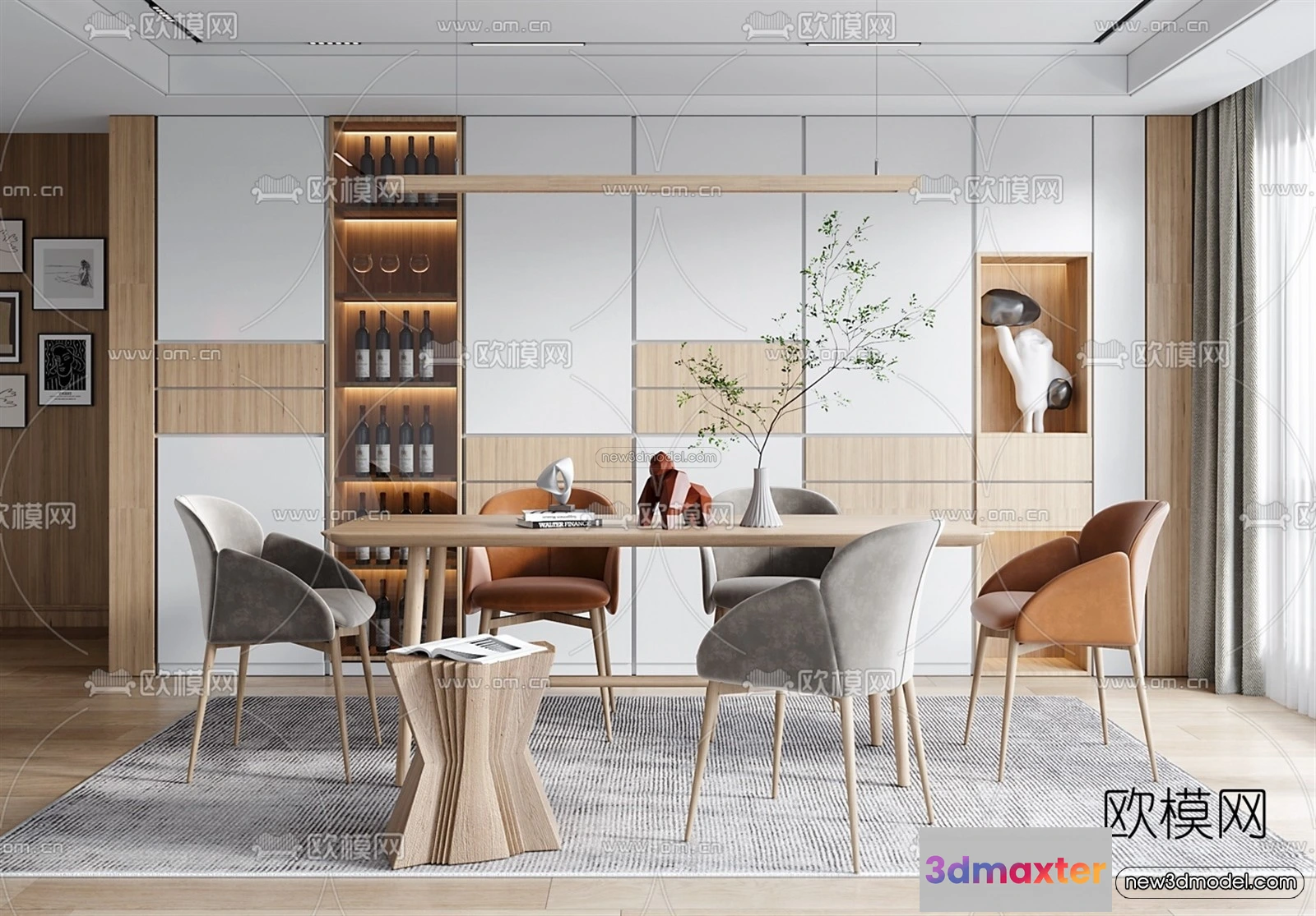 Nordic Style Interior 3D Blocks – Dining Room 3D Model – 415 – Dining Room 3D Model – VRAY