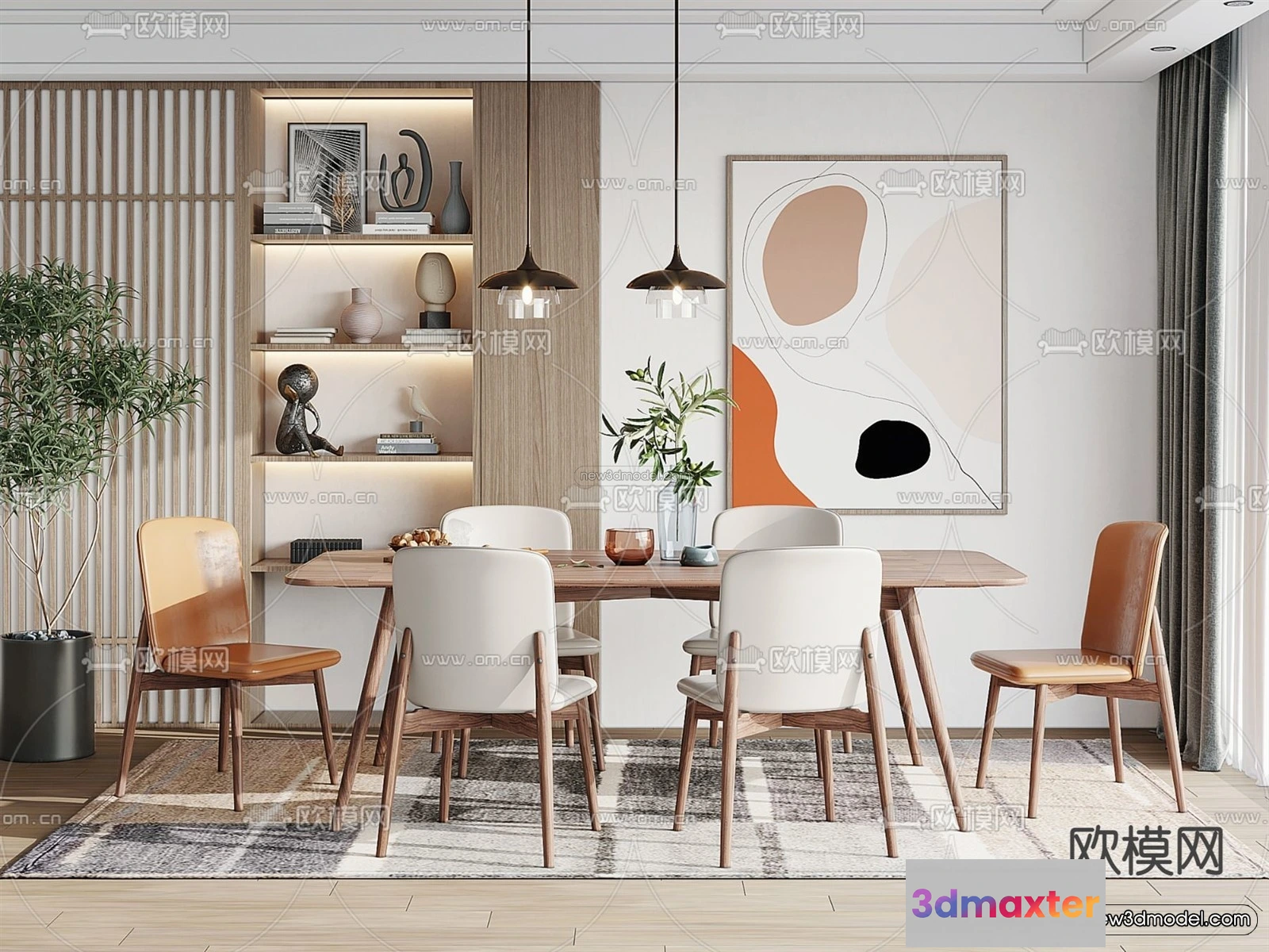 Nordic Style Interior 3D Blocks – Dining Room 3D Model – 416 – Dining Room 3D Model – VRAY