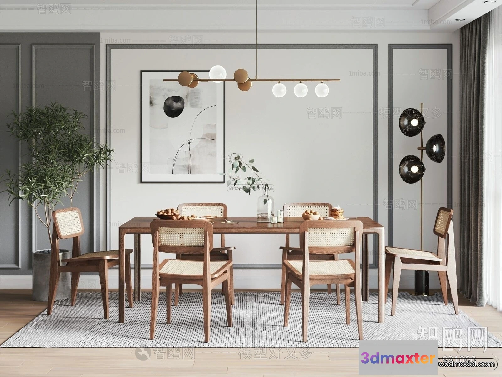 3D Models / 3D Scenes / Interior / Dining Room / Nordic Style Interior 3D Blocks – Dining Room 3D Model – 424 3D Max