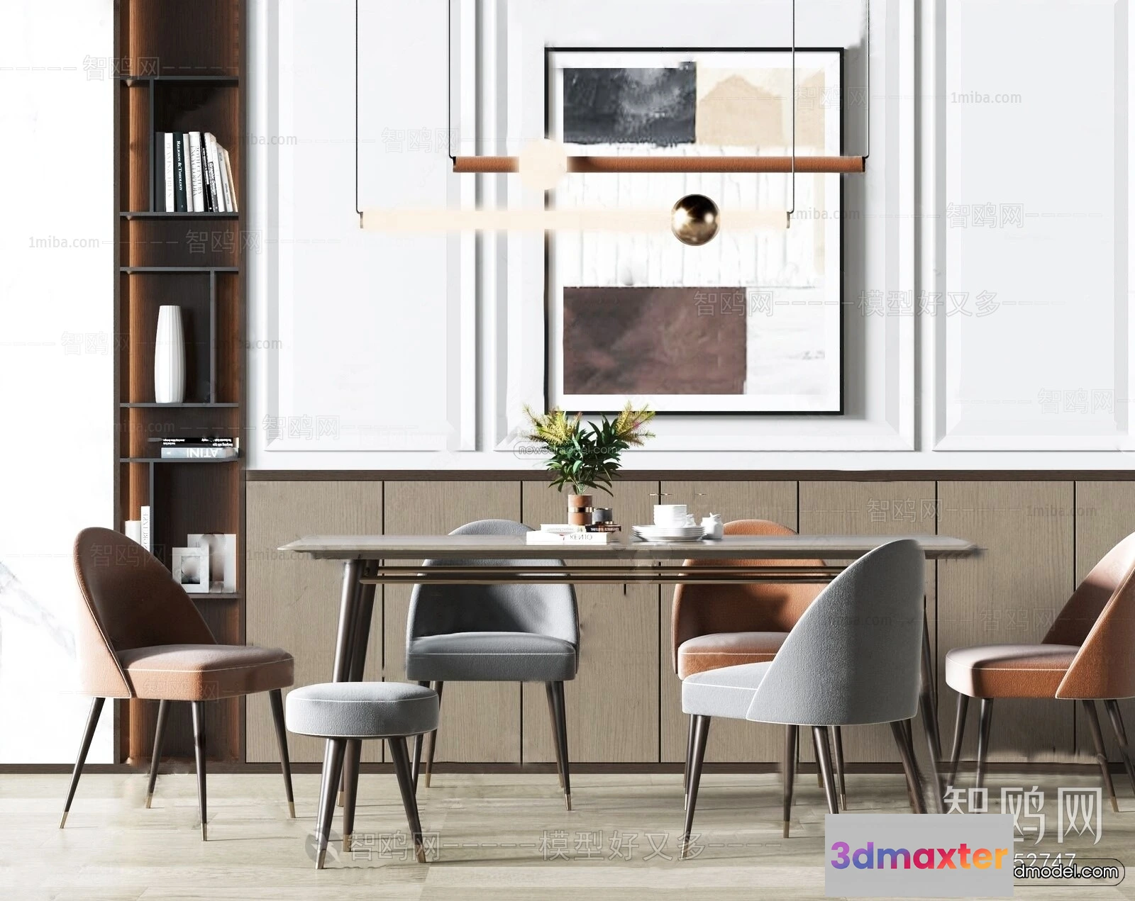 Nordic Style Interior 3D Blocks – Dining Room 3D Model – 431 – Dining Room 3D Model – VRAY
