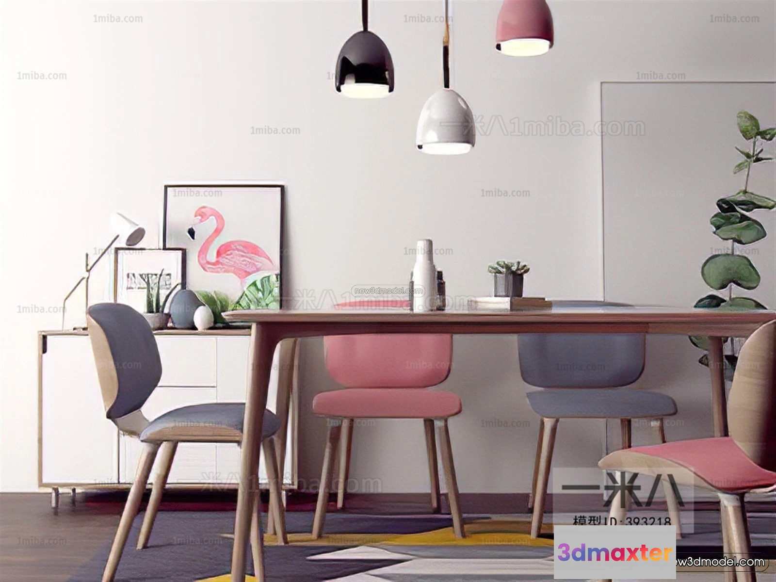 Nordic Style Interior 3D Blocks – Dining Room 3D Model – 432 – Dining Room 3D Model – VRAY