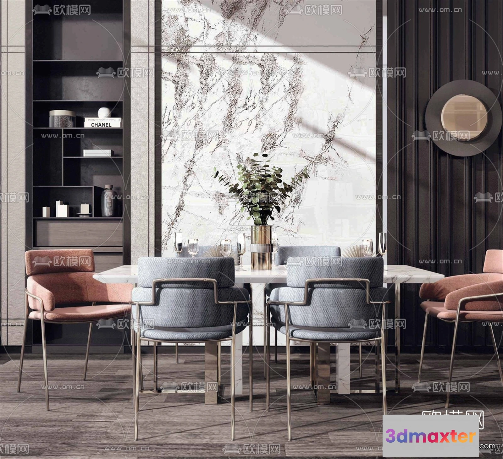 3D Models / 3D Scenes / Interior / Dining Room / Nordic Style Interior 3D Blocks – Dining Room 3D Model – 433 3D Max