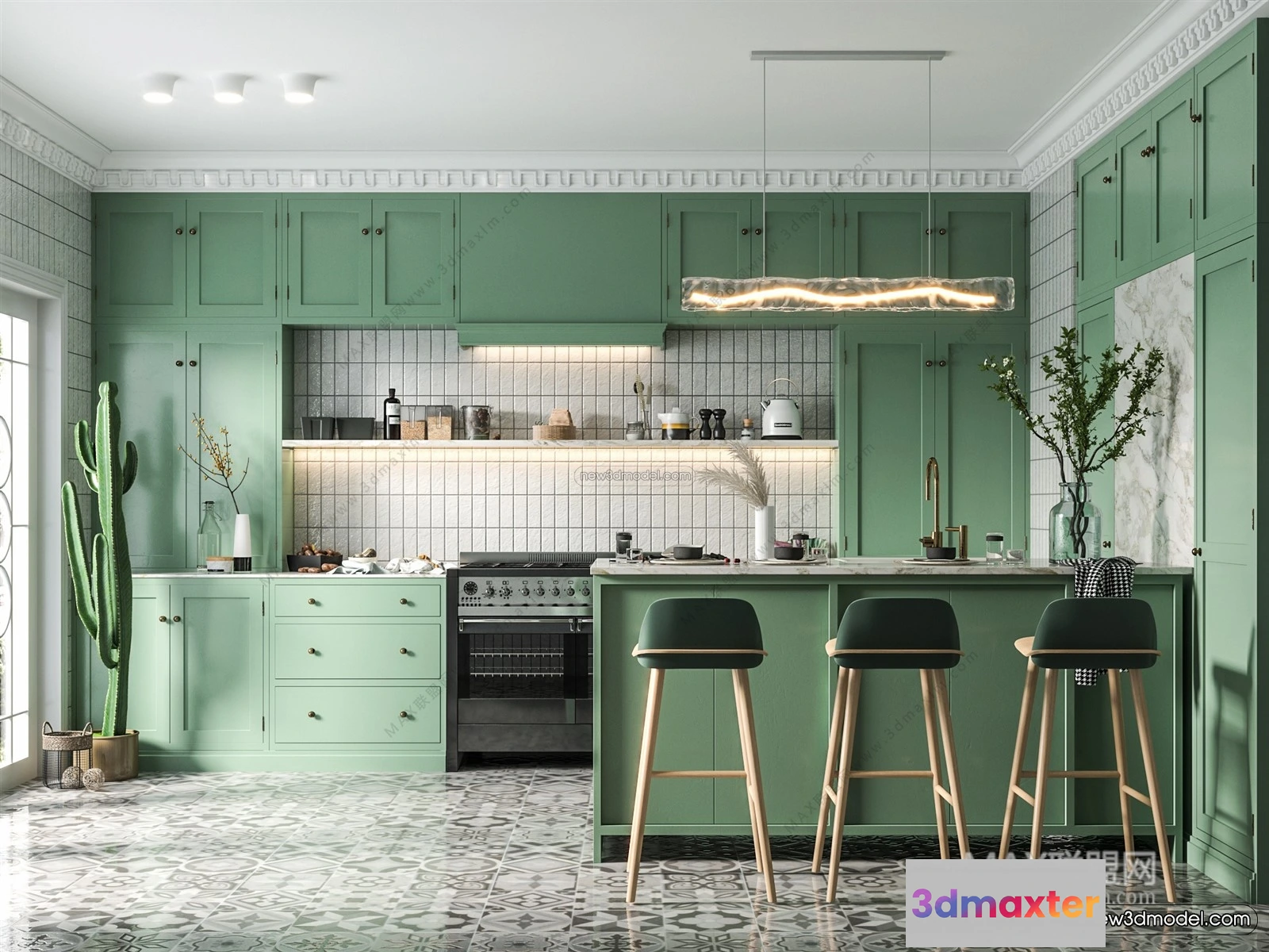 Nordic Style Interior 3D Blocks – Kitchen 3D Model – 437 – Kitchen 3D Model – VRAY