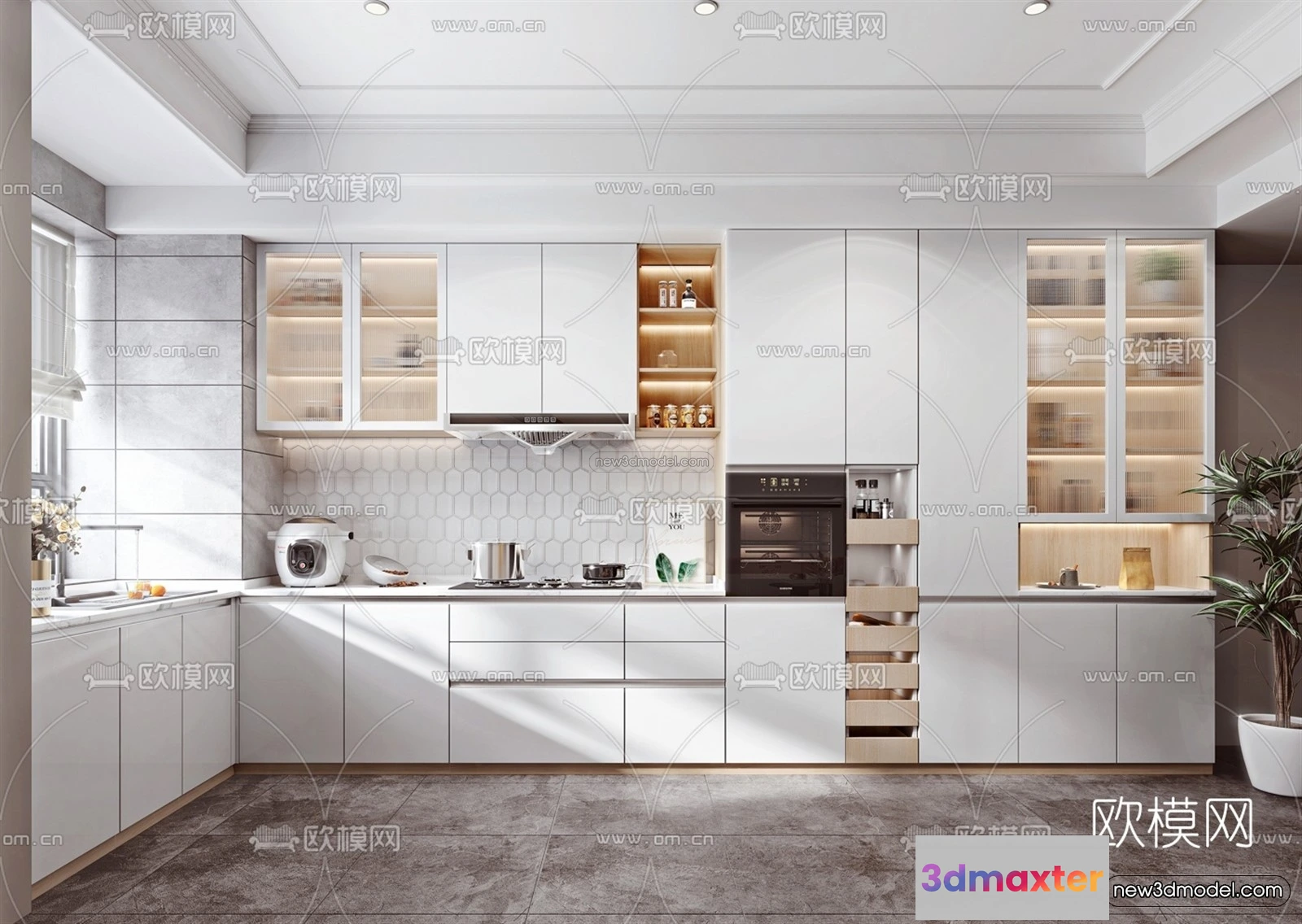 Nordic Style Interior 3D Blocks – Kitchen 3D Model – 444 – Kitchen 3D Model – VRAY