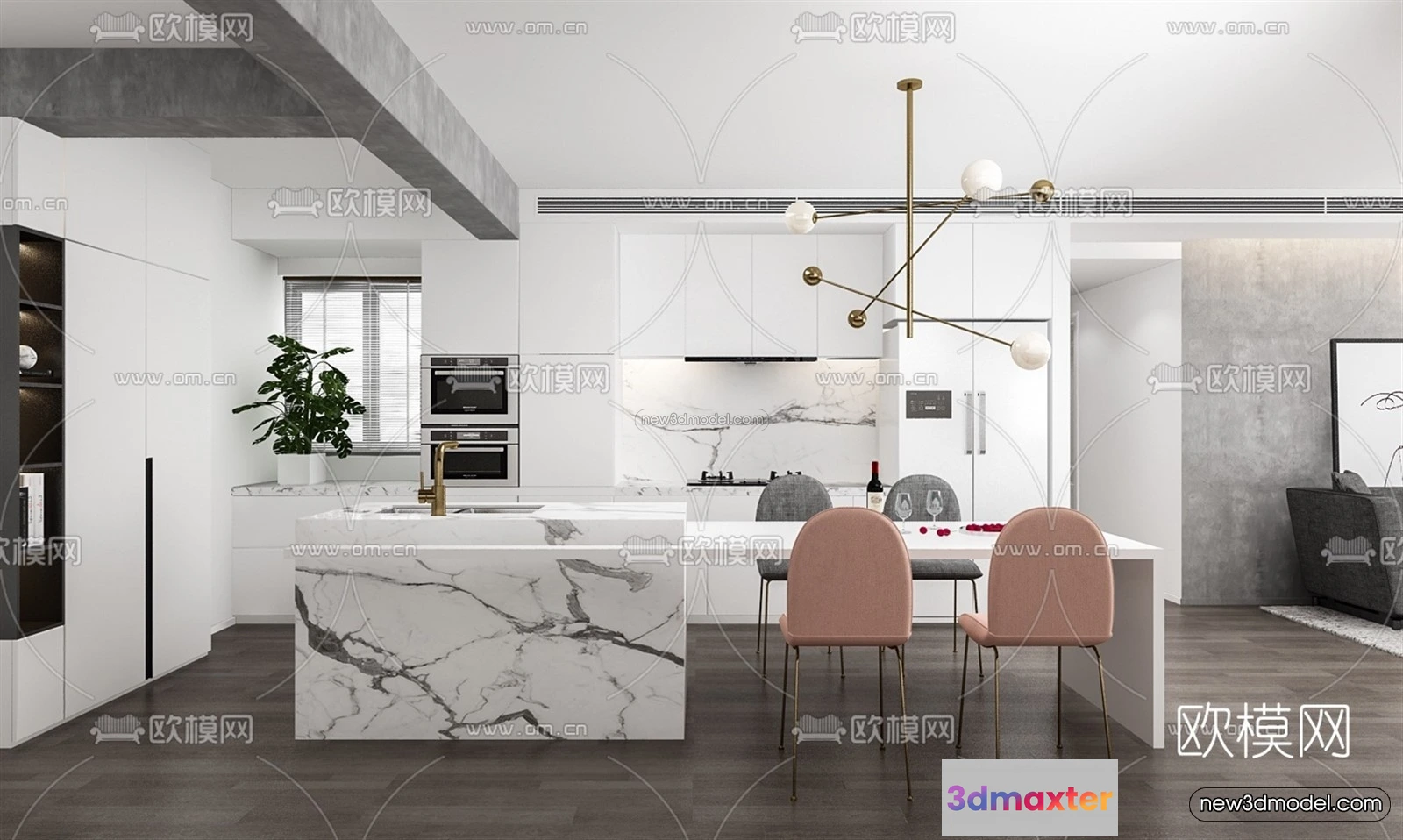 Nordic Style Interior 3D Blocks – Kitchen 3D Model – 447 – Kitchen 3D Model – VRAY