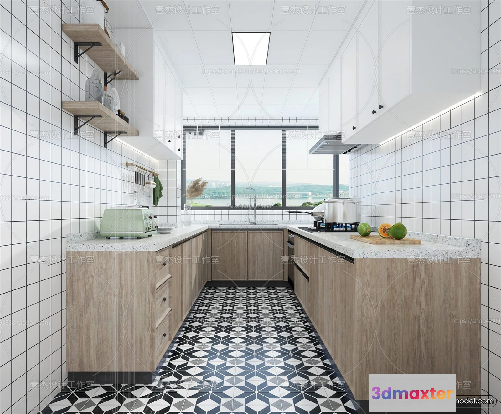 Nordic Style Interior 3D Blocks – Kitchen 3D Model – 466 – Kitchen 3D Model – VRAY
