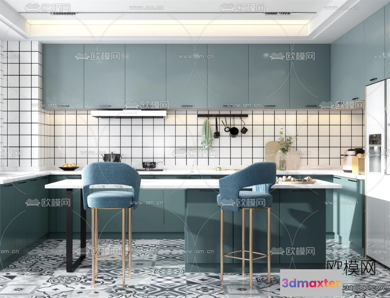 Nordic Style Interior 3D Blocks – Kitchen 3D Model – 468 – Kitchen 3D Model – VRAY