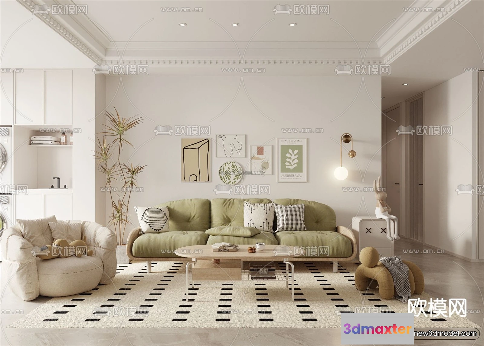 Nordic Style Interior 3D Blocks – Living Room 3D Model – 013 – Living room 3D Model – VRAY