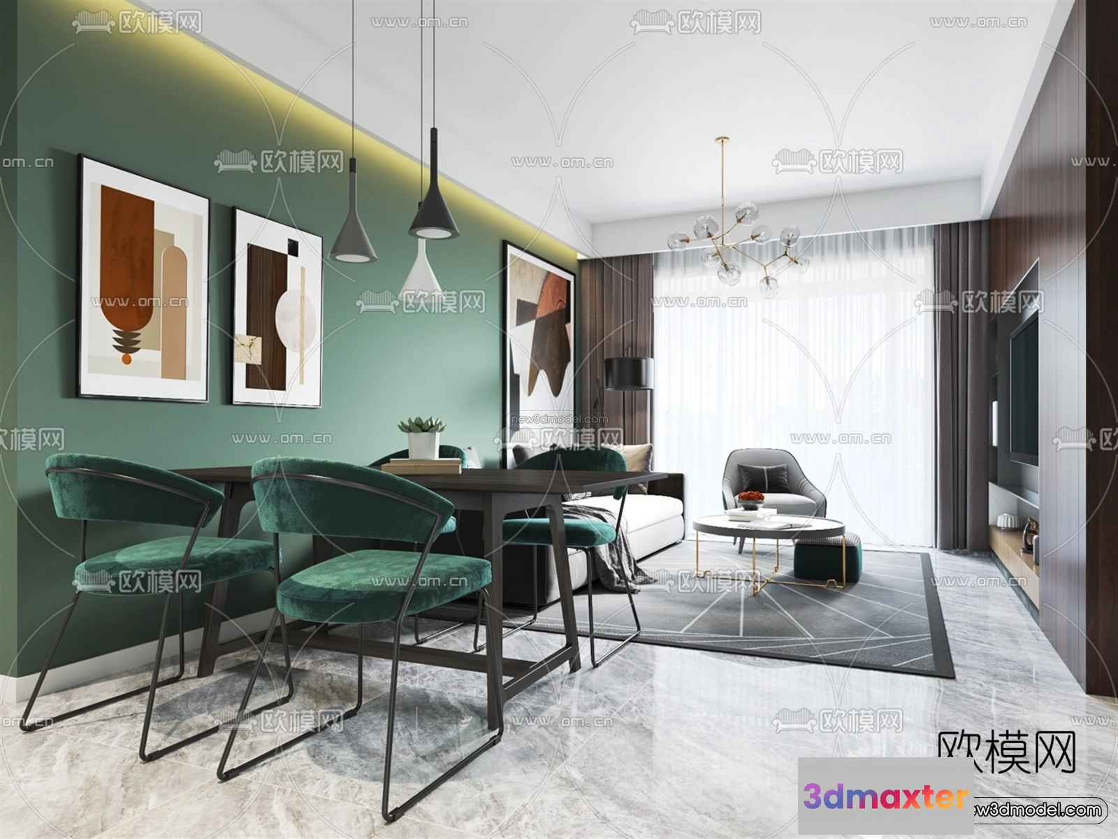 Nordic Style Interior 3D Blocks – Living Room 3D Model – 022 – Living room 3D Model – VRAY