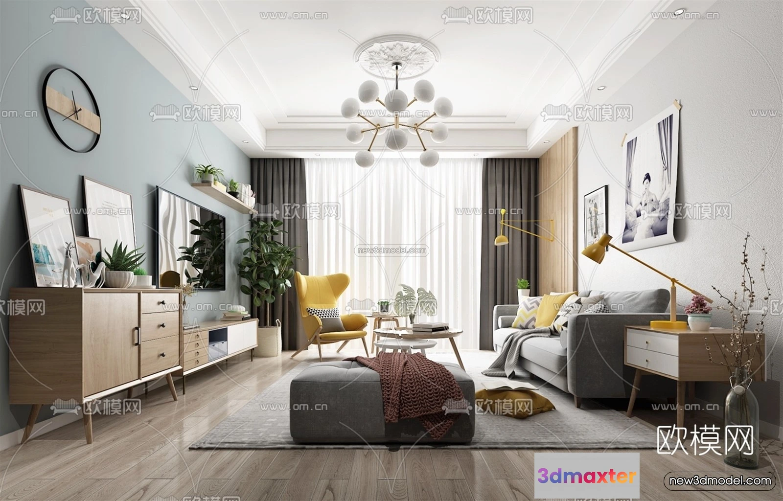 Nordic Style Interior 3D Blocks – Living Room 3D Model – 026 – Living room 3D Model – VRAY