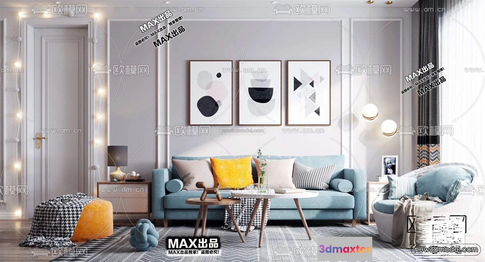 Nordic Style Interior 3D Blocks – Living Room 3D Model – 029 – Living room 3D Model – VRAY