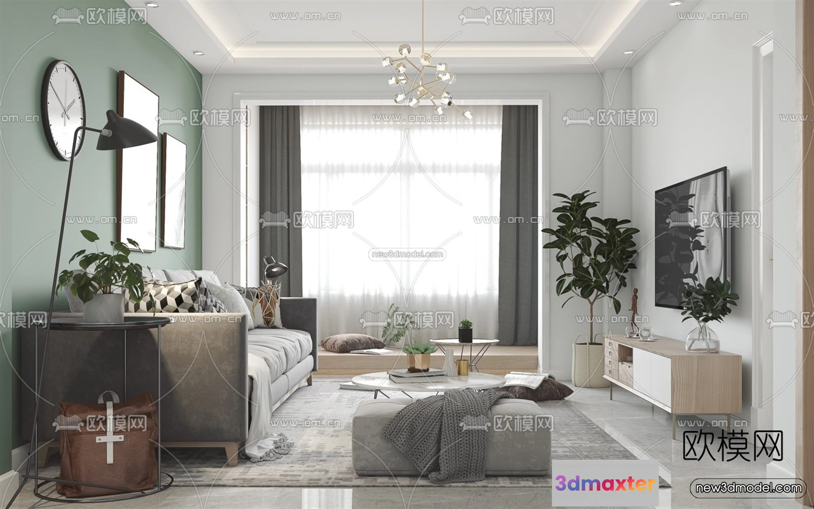 Nordic Style Interior 3D Blocks – Living Room 3D Model – 039 – Living room 3D Model – VRAY