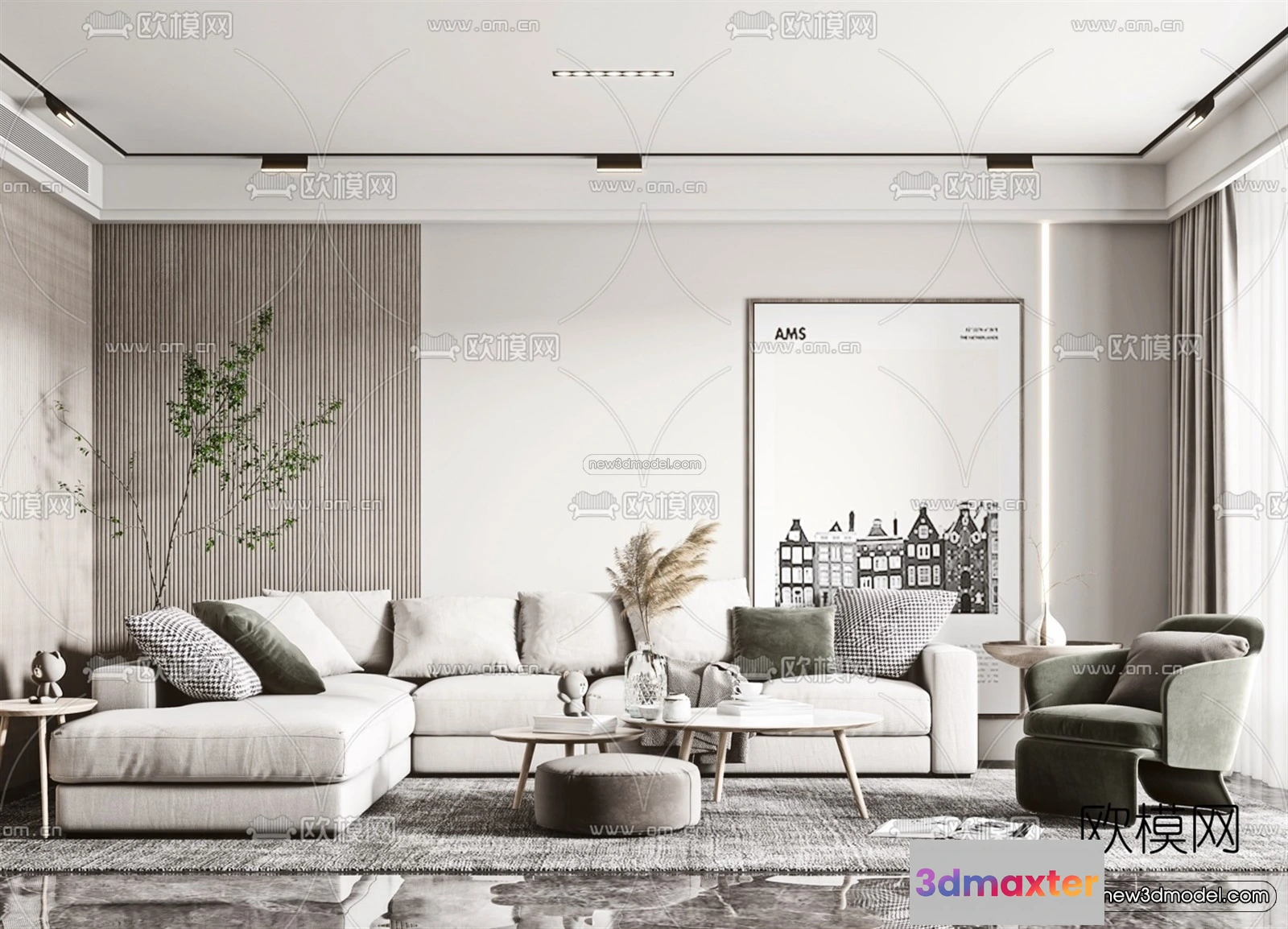 Nordic Style Interior 3D Blocks – Living Room 3D Model – 047 – Living room 3D Model – VRAY