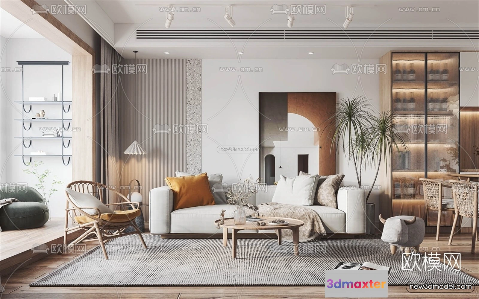 Nordic Style Interior 3D Blocks – Living Room 3D Model – 048 – Living room 3D Model – VRAY