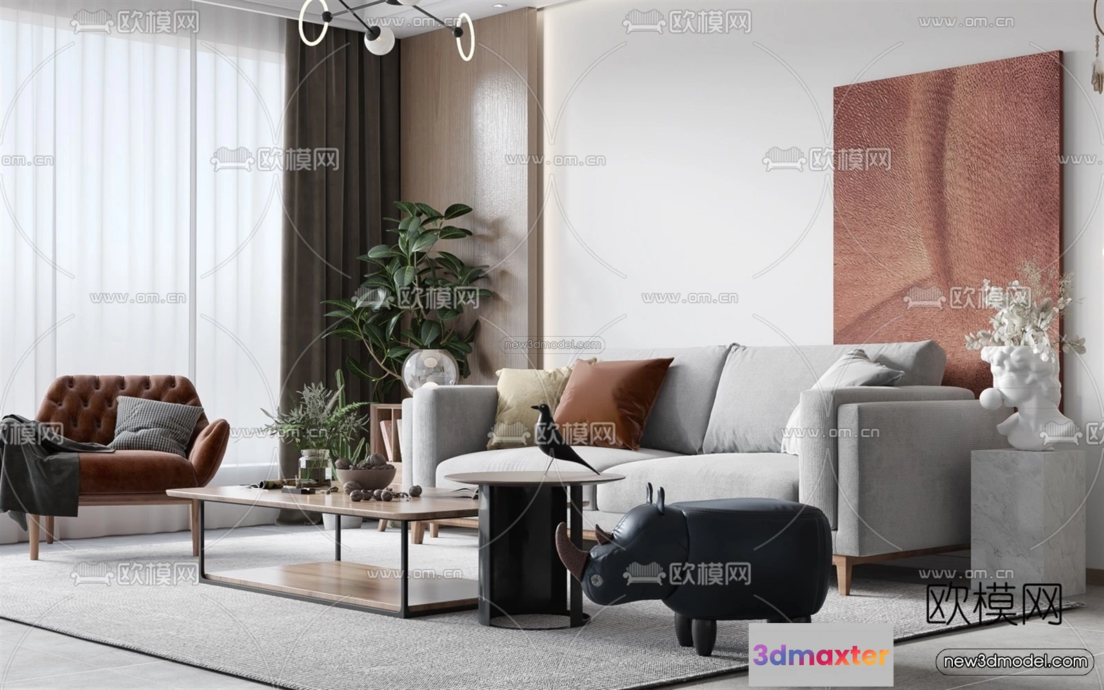 Nordic Style Interior 3D Blocks – Living Room 3D Model – 055 – Living room 3D Model – VRAY