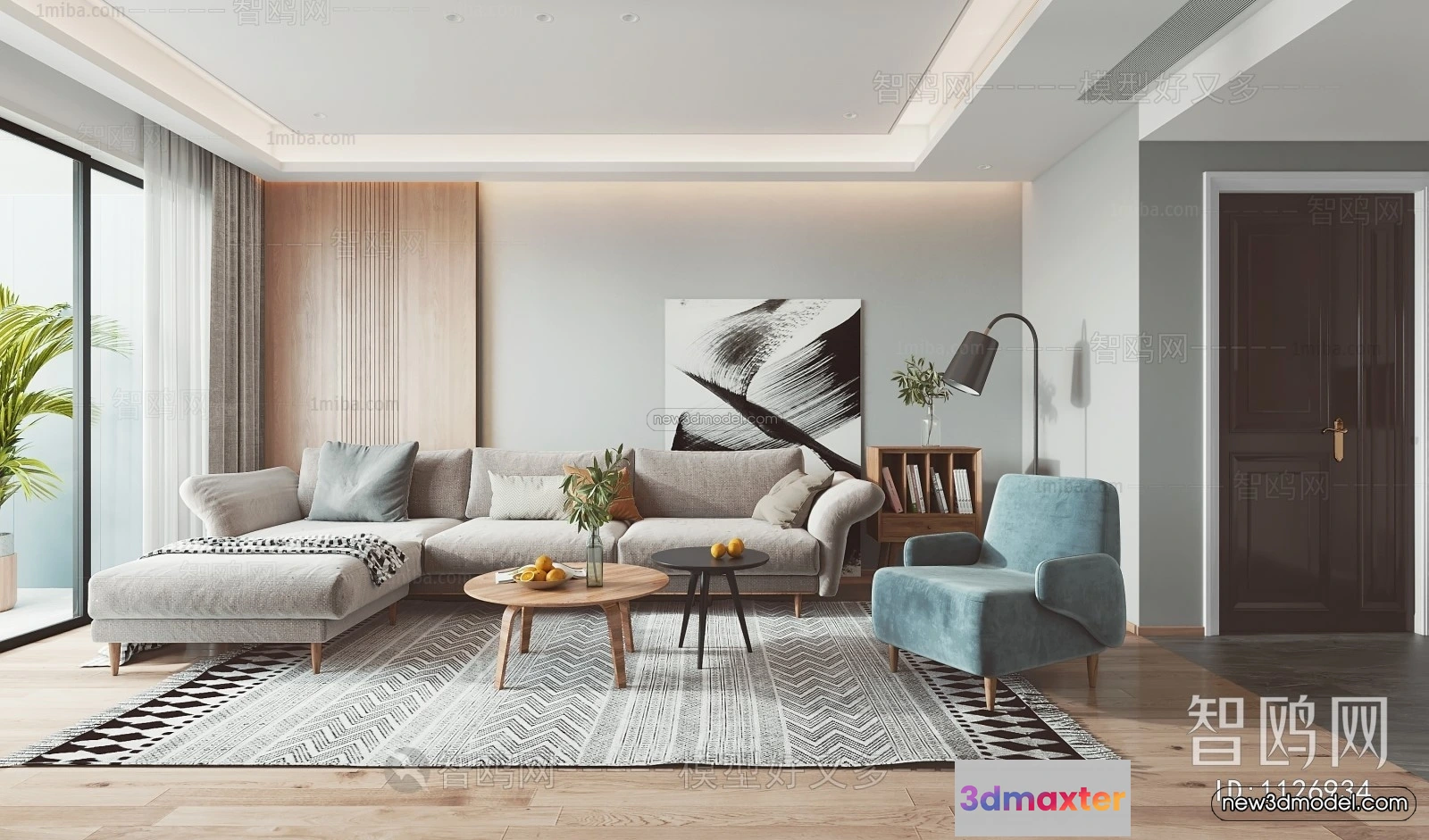 Nordic Style Interior 3D Blocks – Living Room 3D Model – 063 – Living room 3D Model – VRAY