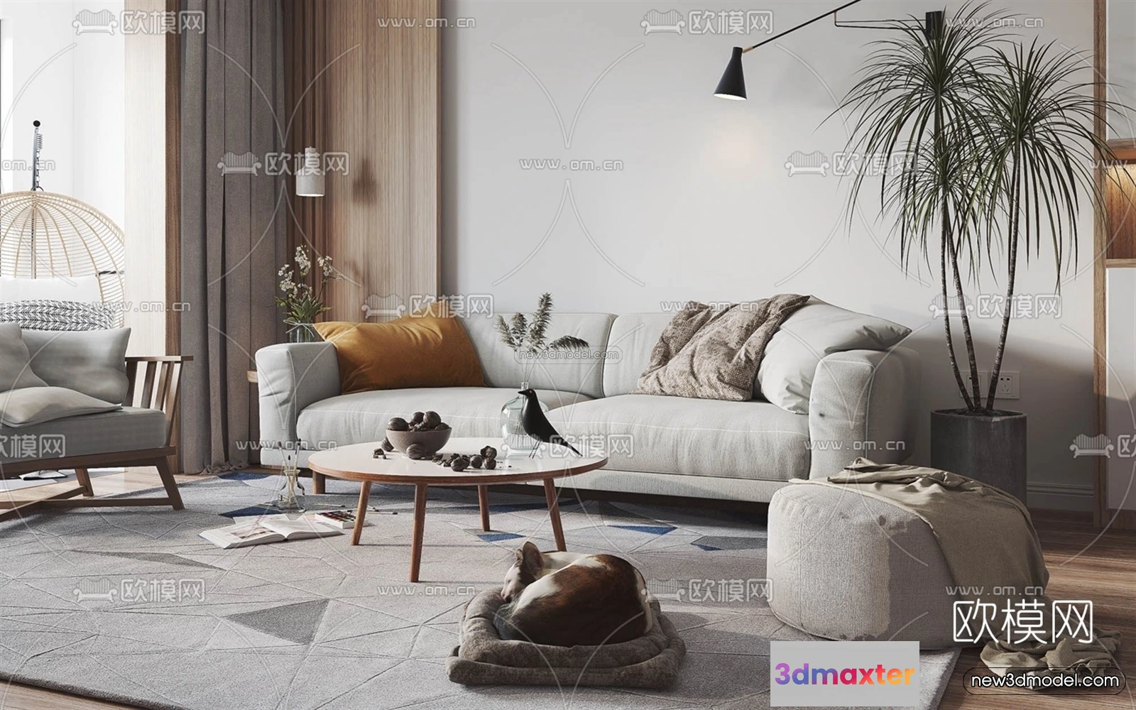 Nordic Style Interior 3D Blocks – Living Room 3D Model – 065 – Living room 3D Model – VRAY