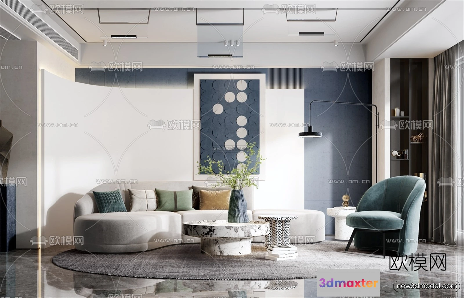 Nordic Style Interior 3D Blocks – Living Room 3D Model – 078 – Living room 3D Model – VRAY
