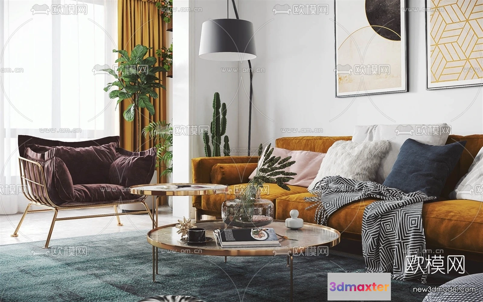 Nordic Style Interior 3D Blocks – Living Room 3D Model – 084 – Living room 3D Model – VRAY