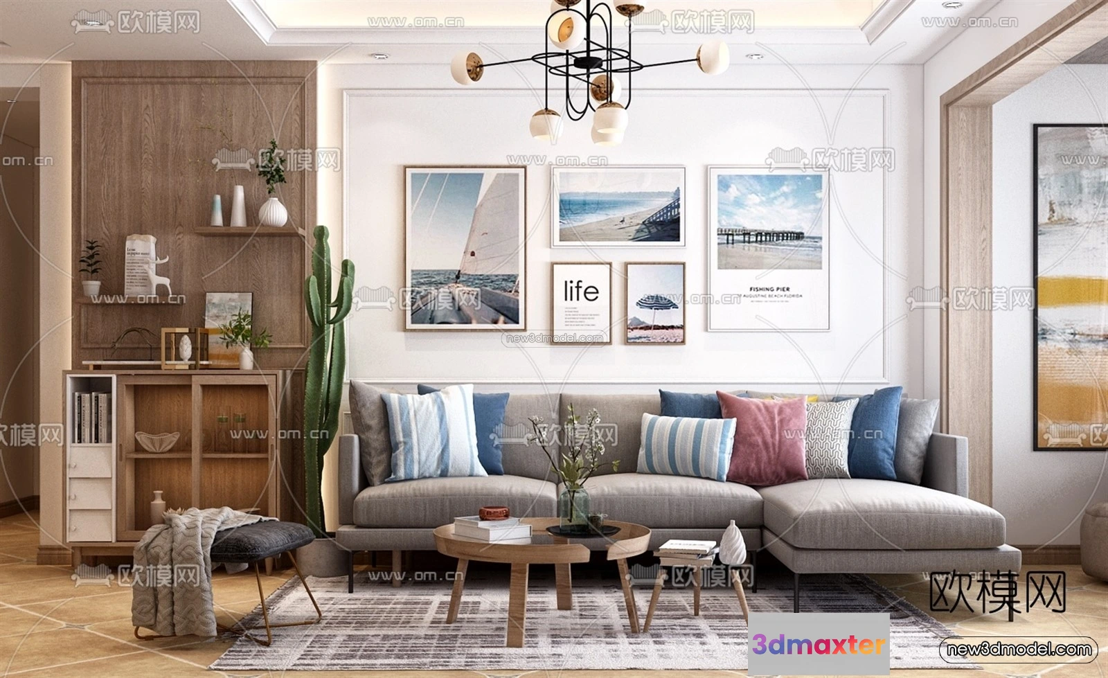 Nordic Style Interior 3D Blocks – Living Room 3D Model – 094 – Living room 3D Model – VRAY