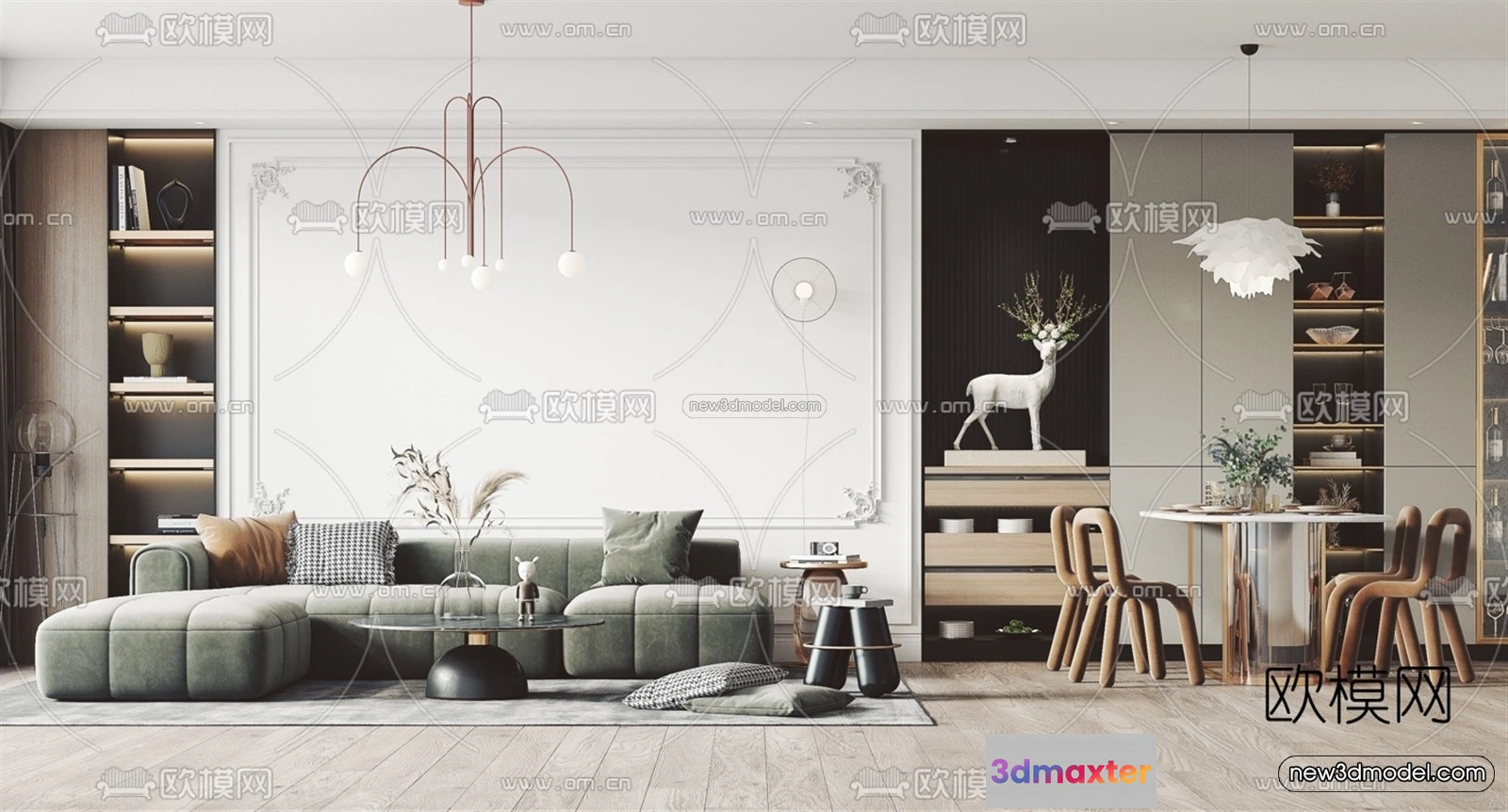 Nordic Style Interior 3D Blocks – Living Room 3D Model – 097 – Living room 3D Model – VRAY