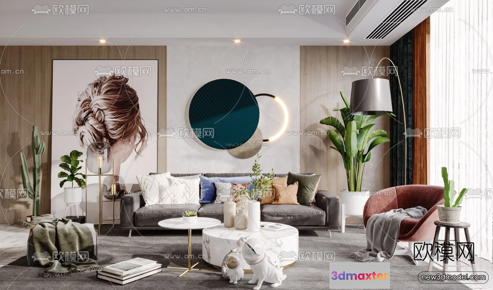 Nordic Style Interior 3D Blocks – Living Room 3D Model – 103 – Living room 3D Model – VRAY