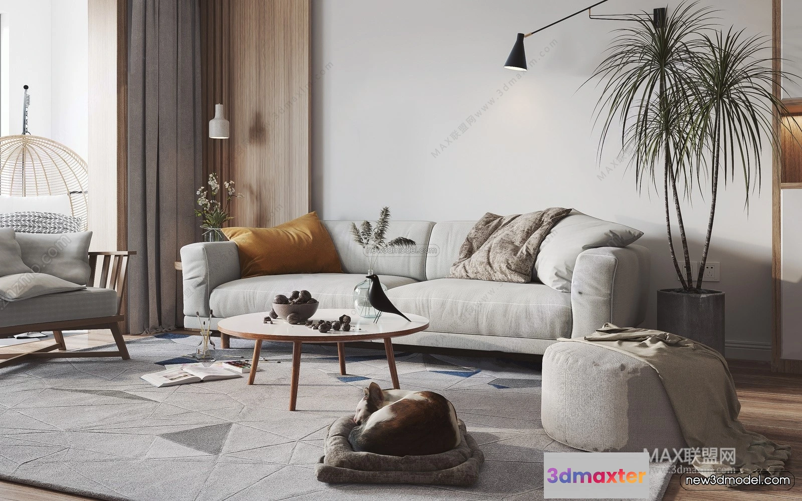 3D Models / 3D Scenes / Interior / Living Room / Nordic Style Interior 3D Blocks – Living Room 3D Model – 121 3D Max