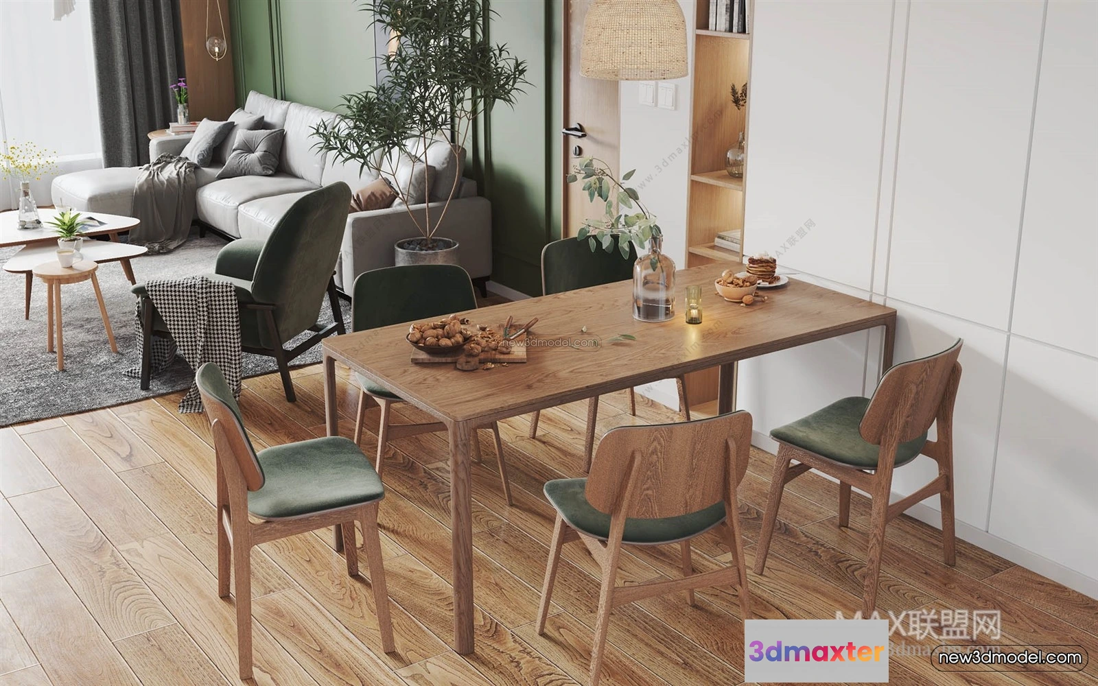 Nordic Style Interior 3D Blocks – Living Room 3D Model – 128 – Living room 3D Model – VRAY