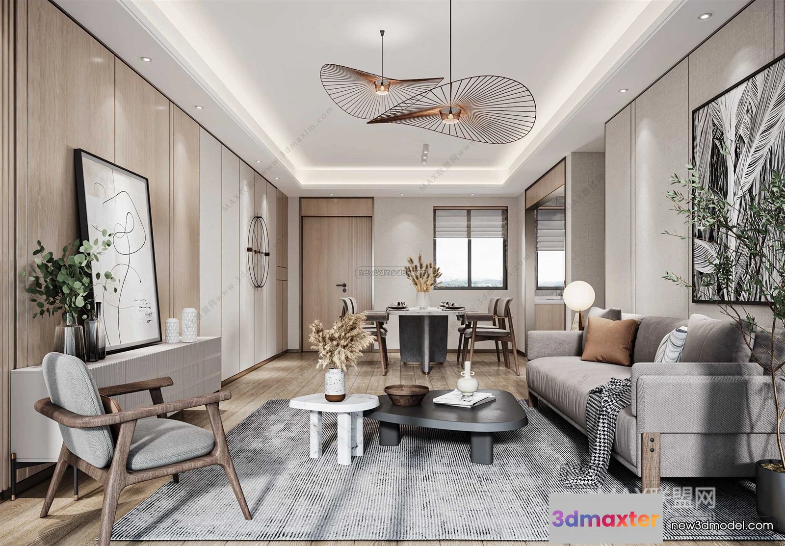 Nordic Style Interior 3D Blocks – Living Room 3D Model – 130 – Living room 3D Model – VRAY