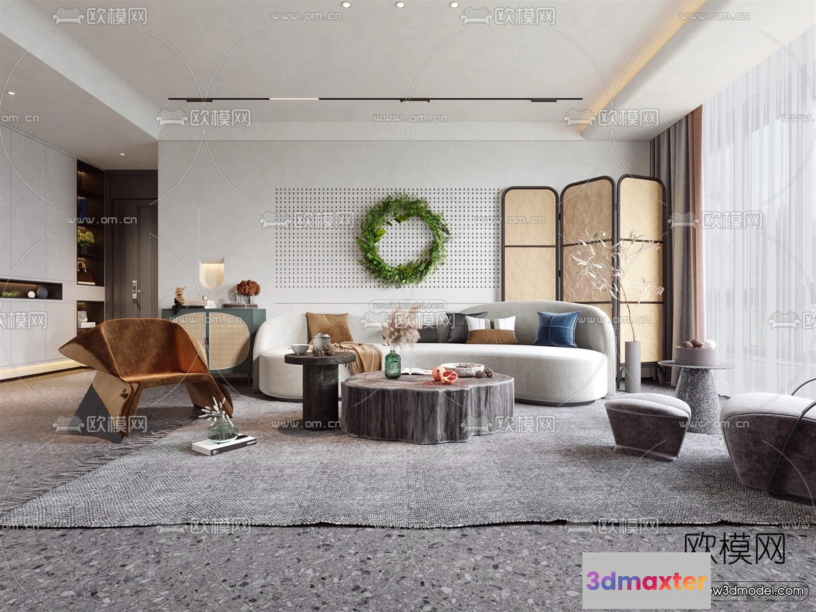 Nordic Style Interior 3D Blocks – Living Room 3D Model – 138 – Living room 3D Model – VRAY