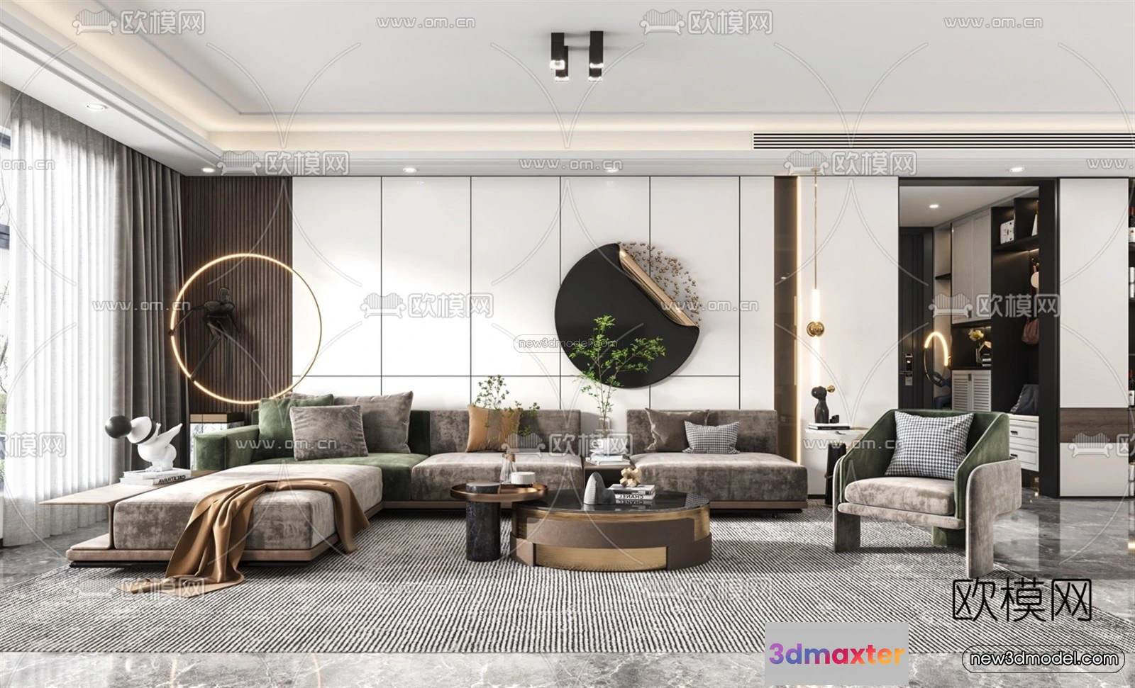 Nordic Style Interior 3D Blocks – Living Room 3D Model – 139 – Living room 3D Model – VRAY